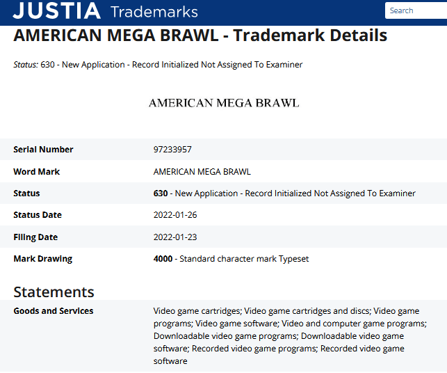 He recently filed the name of a new game, « American Mega Brawl » (possibly the one called « of the Dolphin »).